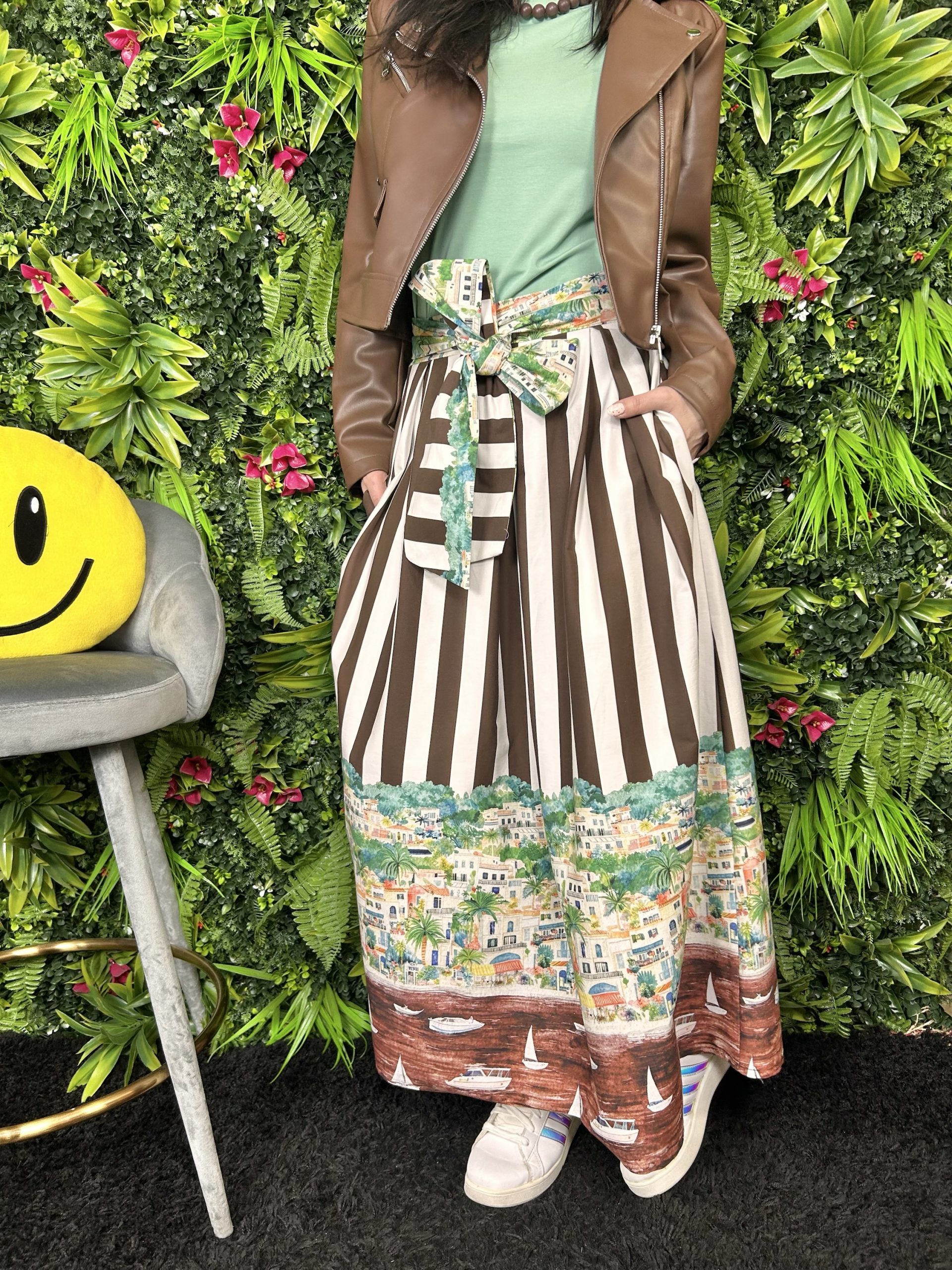 Gonna vita alta elastico posteriore morbido cintura in tessuto cucita dietro 2 tasche ottima vestibilità tg unica si adatta da una 40 a una 46 morbida 100% cotone