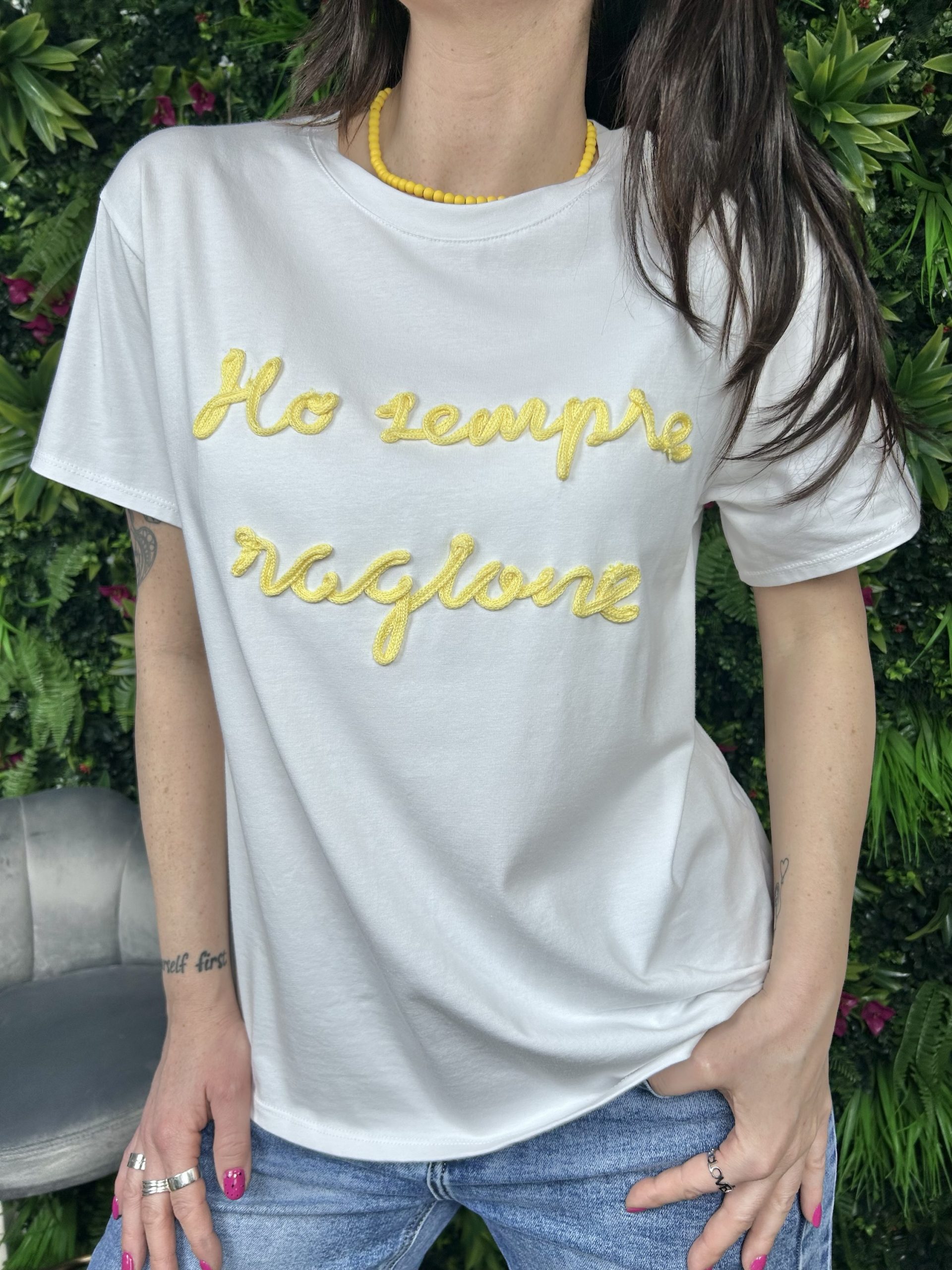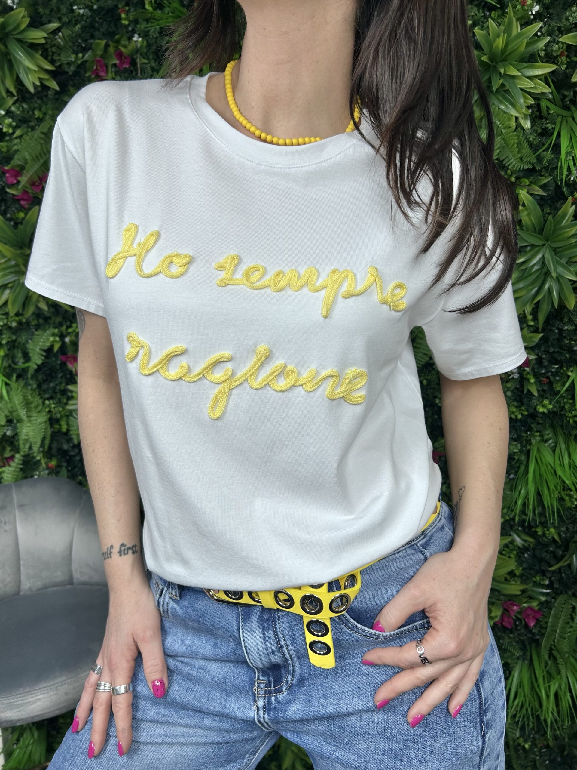 T-shirt con stampa tg unica vetibilità over da una 44 a una 48 95% cotone 5% elastan